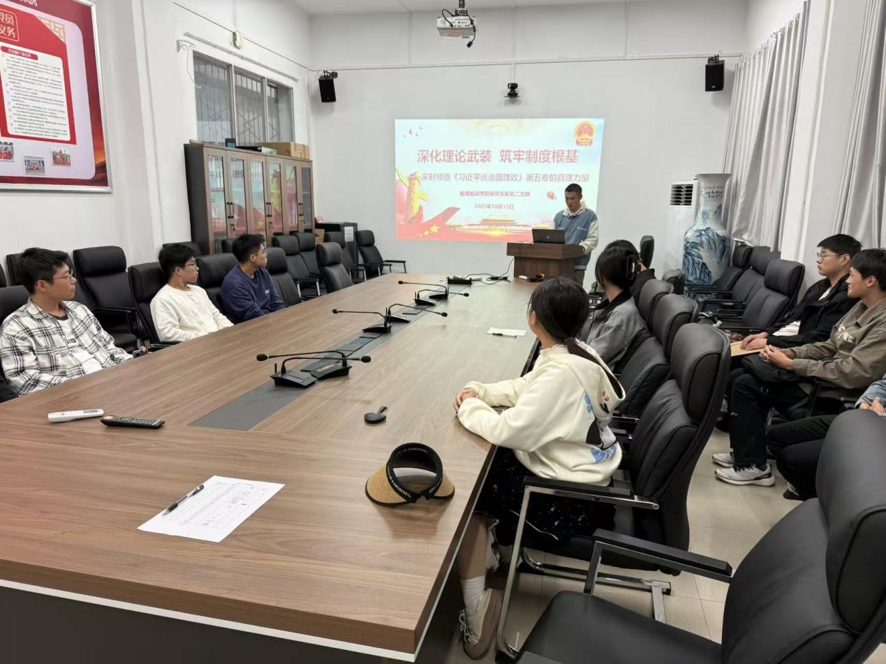 为深入学习贯彻习近平总书记关于教育强国建设的重要论述,深刻领悟习近平新时代中国特色社会主义思想的核心要义,2025年10月13日,565net必赢客户端研究生轮机二支部组织召开专题学习会,聚焦“贯彻落实全国教育大会精神,扛起教育强国建设的使命责任”与“深刻领悟《习近平谈治国理政》第五卷的真理力量”两大主题,开展深入学习和交流研讨。本次活动旨在引导支部党员深化理论武装,筑牢信仰之基,明确时代责任,将学习成果转化为推动科研创新、服务国家战略的自觉行动。会议由党支部副书记李传涛同志主持。