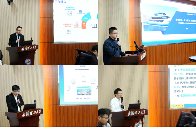 在技术交流报告环节中,中国船级社武汉规范研究所吴顺平总工程师、中国船舶集团有限公司第七一二研究所张奇主任、湖北亿纬动力有限公司张晗和必赢565net官网董东升副教授,分别开展题为《创新规范标准助力绿色航运高质量发展》、《船舶绿色智能动力技术发展》、《EVE船用新技术发展探讨》和《船用甲醇发动机先进燃烧技术研究进展》的报告。
