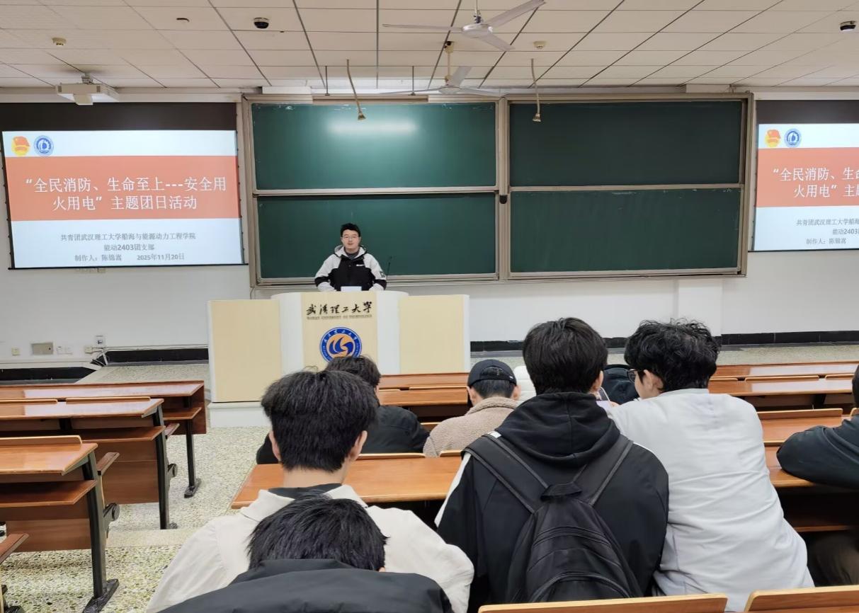 为进一步增强同学们的消防安全意识,普及安全用火用电知识,提升应急自救能力,1120日下午,能动2403团支部在航海楼109教室组织开展了“全民消防,生命至上——安全用火用电”主题团日活动。本次活动由团支书陈锦嵩主持,支部全体成员积极参与。