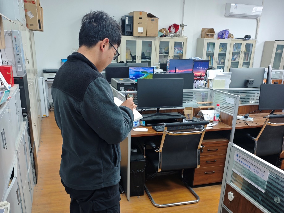 在宿舍消防通道专项检查环节,巡查组逐一走访全院宿舍,以“全覆盖、无死角”为原则,重点核查宿舍消防通道是否畅通无阻,详细检查通道内是否存在堆放衣服杂物等占用、堵塞通道的情况,同时对通道两侧应急照明设备、疏散指示标志是否完好有效进行细致排查。