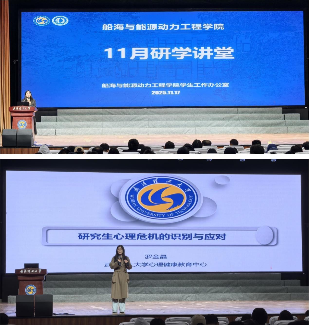 为持续推进研究生心理健康教育,提升师生对心理危机的识别与干预能力,营造互助融洽、积极向上的科研学习环境,11月17日上午,565net必赢客户端在余区大礼堂举行“研究生心理危机的识别与应对”专题讲座暨十一月研学讲堂活动。学院24级、25级全体研究生参加了本次讲座。活动由辅导员潘玟竹主持,学院特邀心理健康中心罗金晶老师作专题讲座。