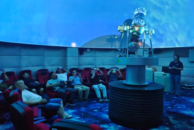 在天象馆周阳老师和“筑梦深蓝”讲解队队员的带领下,校友们一起参观了天象馆、航海博物馆,穹顶之上,繁星如昨;展柜之中,模型如生。大家围绕智能船舶、绿色航运等前沿话题热烈讨论,仿佛又回到当年在实验室挑灯夜战、在图书馆抢占座位的求学岁月。