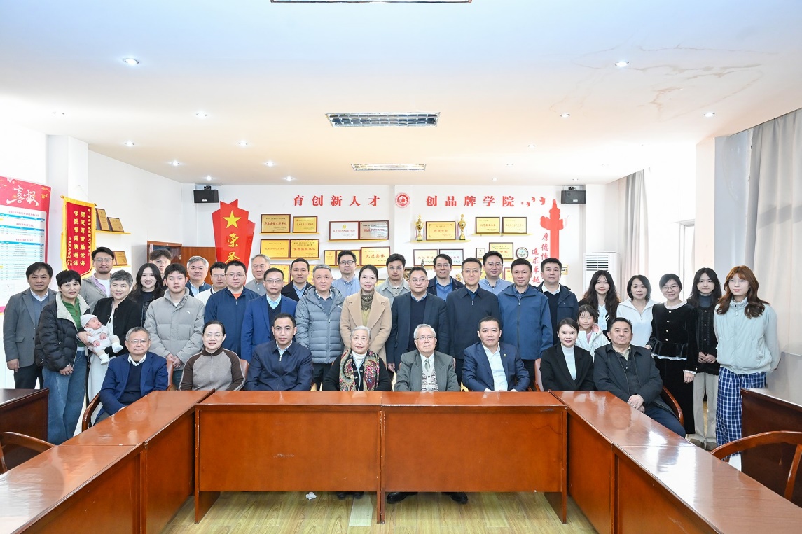 座谈会尾声,学生代表向翁教授敬献鲜花,表达后辈学子的深深敬意与美好祝福。全体与会人员合影留念,定格下这温暖而具有纪念意义的时刻。